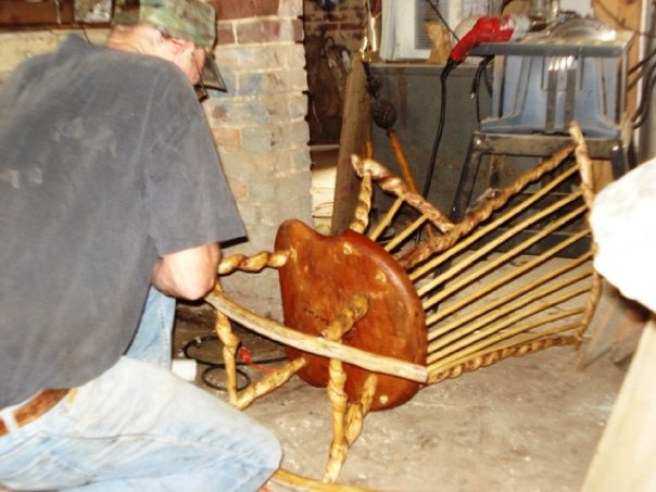 John Steele Davis incorporates these ornate designs into unique rustic furniture crafted entirely by hand. “To my knowledge, no one else has built furniture in this style,” said John, who is as unique as his creations.