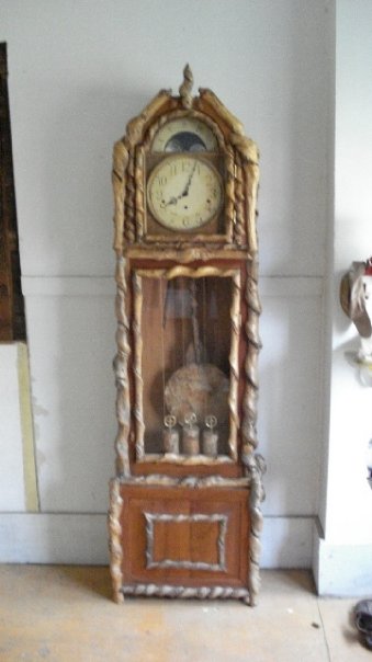 Grandfather clock - cherry and other hardwoods, hand-painted face